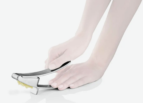 Verwenden Sie die Presse direkt in der Hand oder platzieren Sie sie auf der Arbeitsfläche, um leichten Druck von oben auszuüben. Der ergonomische Griff sorgt für hohen Bedienkomfort und eine gleichmäßige Kraftverteilung. So sparen Sie Kraft und haben die volle Kontrolle.