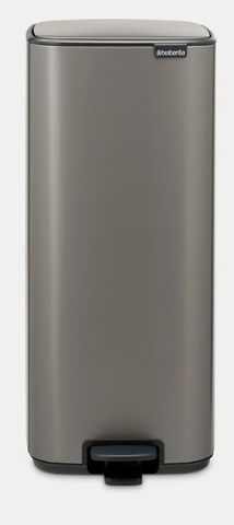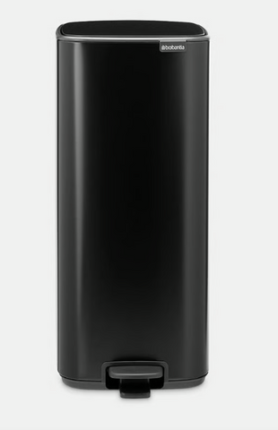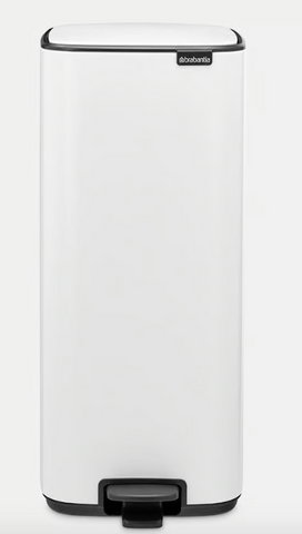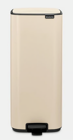 Dieser schmale Bo Treteimer mit 36 Liter Fassungsvermögen ist platzsparend, verfügt über ein hygienisches Pedal und der Deckel schließt sich sanft. Es gibt einen arretierenden Deckel, damit man ihn einfach reinigen kann.
