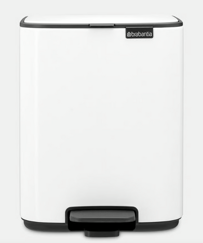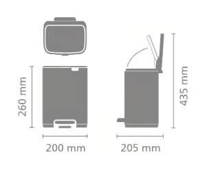 Dieser platzsparende Mülleimer passt perfekt in jede Ecke. Er hat einen sanft schließenden Deckel, der auf hygienische Art entweder mit dem Pedal oder mit dem umlaufenden Rand des Deckels von Hand geöffnet werden kann sowie eine Offenhaltefunktion.