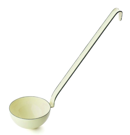 Nicht nur für Suppenliebhaber ist unser Schöpflöffel oder Suppenkelle aus Emaille. In vielen Küchen als optischer Blickfang aufgehängt, leistet sie viele praktische Dienste beim Servieren und Schöpfen von flüssigen Speisen.